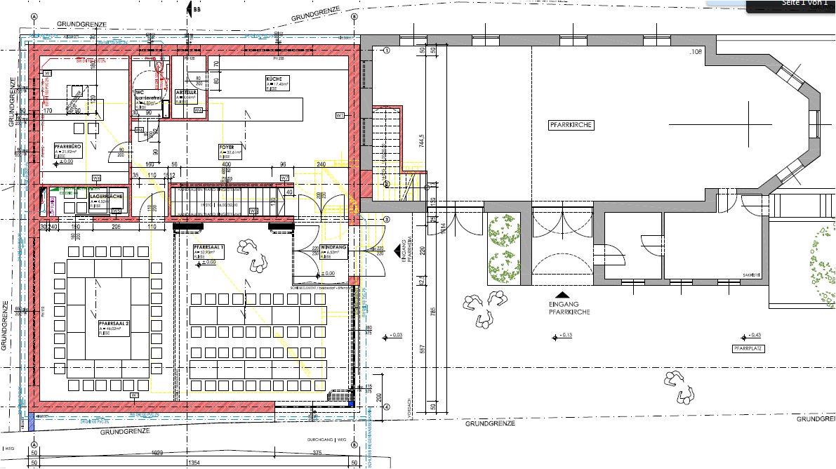 Nach der Baufreigabe durch die DFK (Diözesanfinanzkammer) am 17.06.2016 starten die Abriss- und Neubauarbeiten, unter der Leitung des Architekturbüros GHT aus St. Martin, Ende Juni 2016.