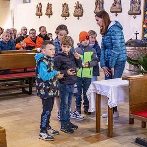 "Jesus Christus, ich bin da und freu mich, dass du unser Freund sein willst!", mit diesen Worten begannen Kinder aus Regau und Rutzenmoos den Vorstellgottesdienst im Rahmen der Erstkommunionvorbereitung in unserer Pfarrgemeinde. Pater Mario verdeutlichte in seiner Predigt das Wesen der Sakramente mit dem Symbol eines heiligen Geschenks: Gott schenkt uns dieses, um unser Leben in ganz bestimmten Momenten zu bereichern oder zu erleichtern. So schenkt Gott sich den Kindern bei der Erstkommunion zum ersten Mal im gewandelten Brot, um ganz nah bei ihnen zu sein.